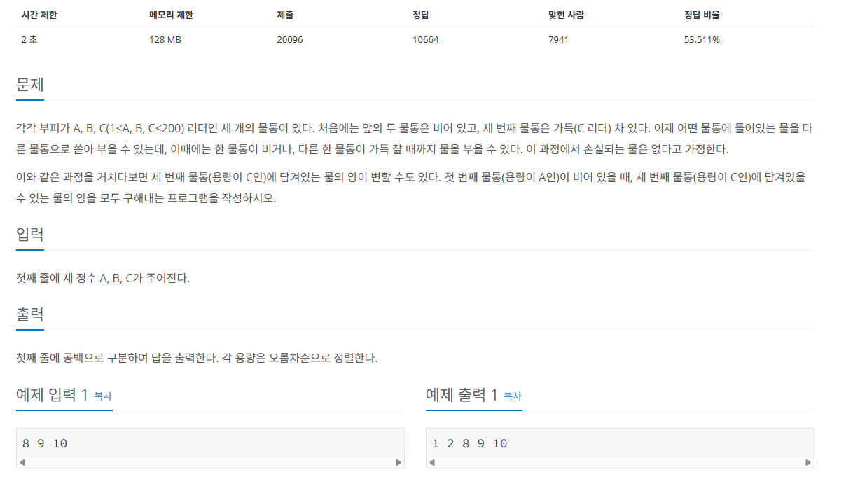 문제 링크: 백준 2251 - 물통