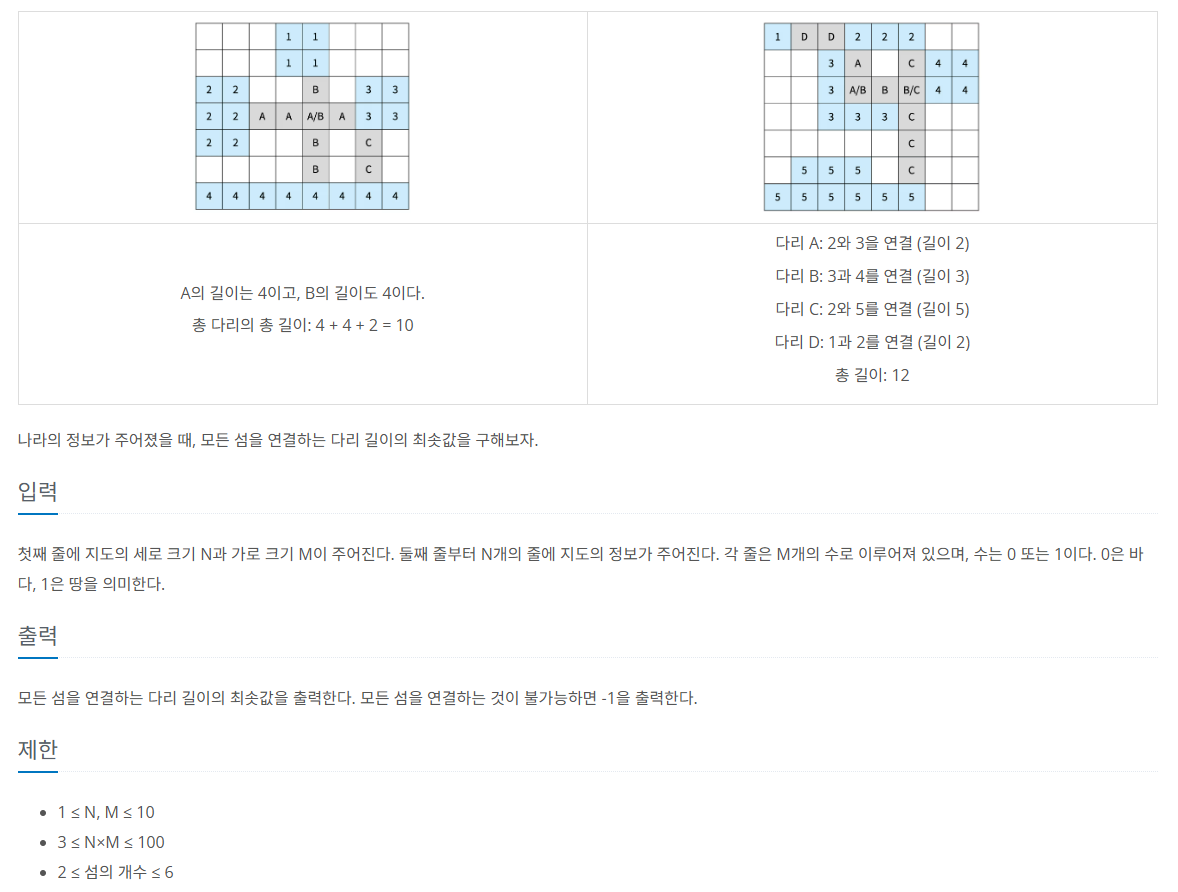 문제 링크: 백준 17472 - 다리 만들기 2