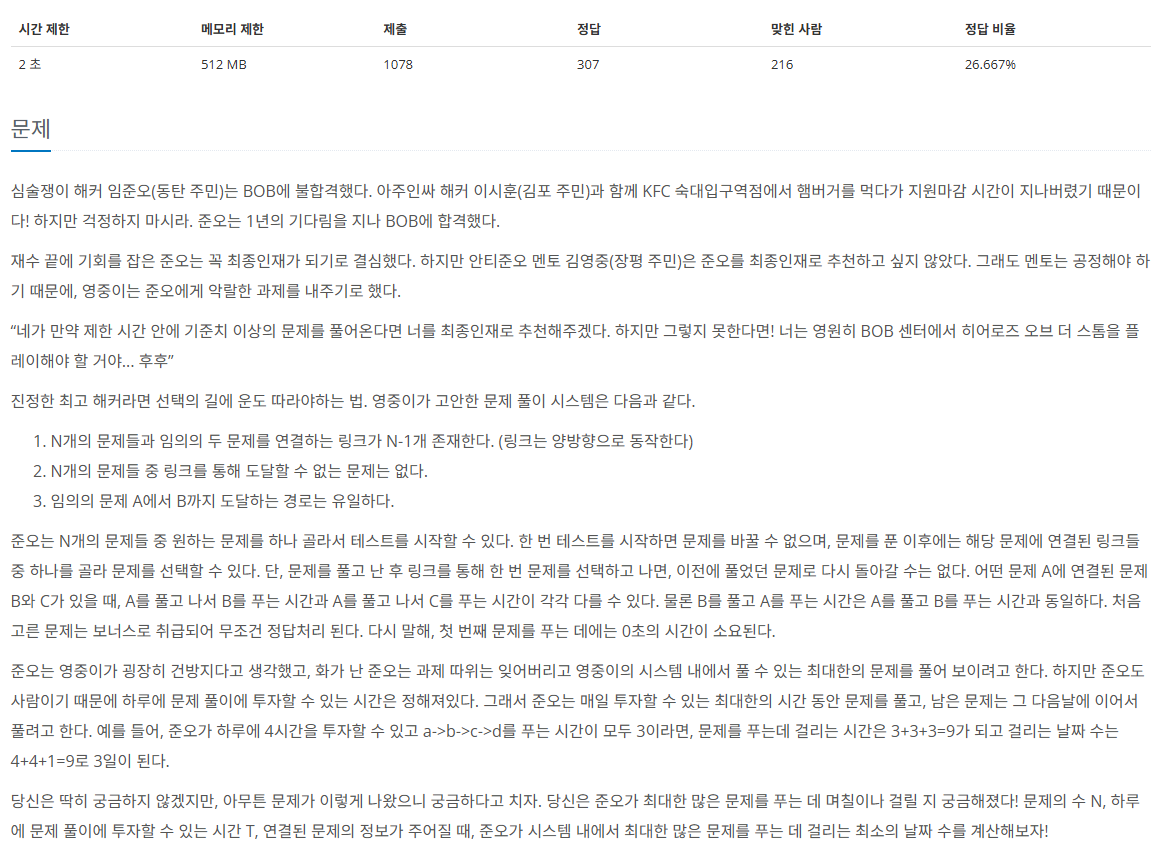 문제 링크: 백준 14657 - 준오는 최종인재야!!