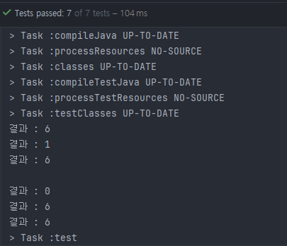 맨 위의 2개 테스트는 기존의 테스트이고 나머지 5개는 추가 예외처리가 필요하다고 생각해서 추가하였다.