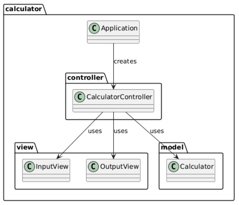 아래 사진은 계산기 프로그램의 프로젝트 구조이다. 패키지의 역할에 따라 model, view, controller로 나눠서 구현하는 MVC 패턴을 적용시켜서 구현하였다.