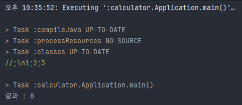 콘솔에 커스텀 구분자를 //와 \n를 직접 입력해서 하면 결과가 잘 나온다.