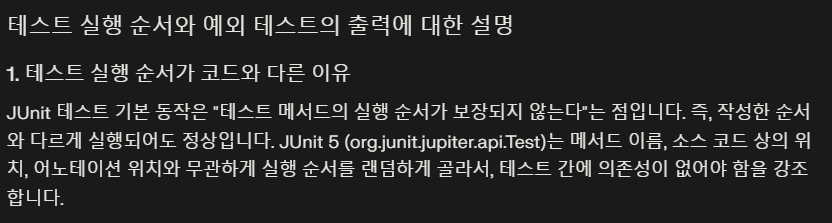 결과의 순서는 테스트 코드의 순서와 다른데, 그 이유는 .. 이렇다고 한다.