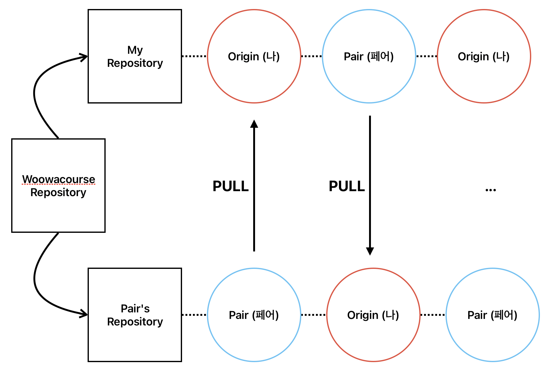 앞으로 페어 프로그래밍이 끝날 때까지 이 사이클(pull pair -> 작업 -> push origin)을 계속 반복하면 된다.